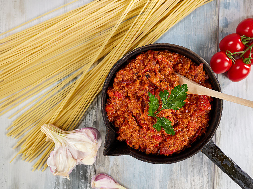 Wer liebt sie nicht: die italienische Bolognese. Aus Base Aromatic oder Base Red lassen sich vielseitige „Hackfleisch-Gerichte“ zaubern.